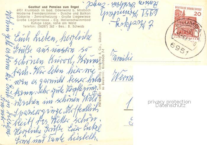 73542837 alte Postkarte Krumbach Odenwald Gesamtansicht Gasthof zum Engel Hallenbad postalisch gelaufen Erhaltung siehe scans [FriedD77] KatCode: 11110006431007