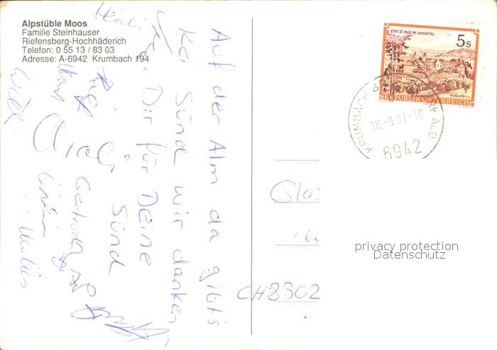 72170497 alte Postkarte Krumbach Vorarlberg Alpstueble Moos postalisch gelaufen Erhaltung siehe scans KatCode: 11390341080221