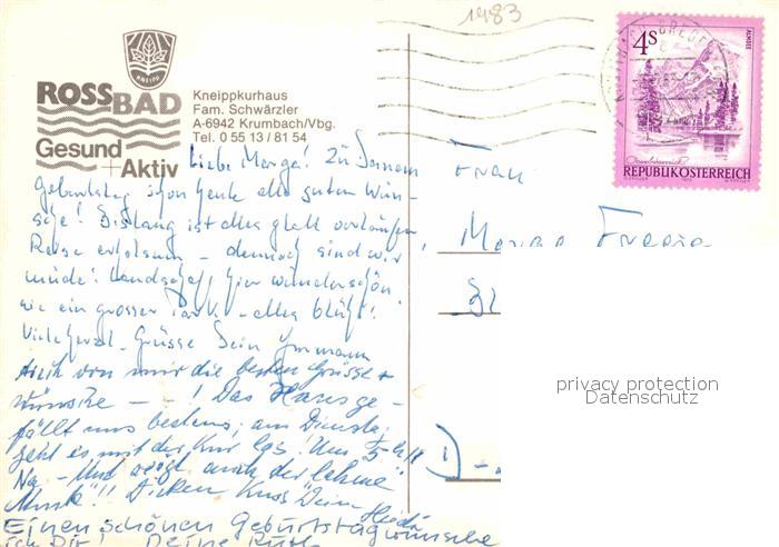 72898930 alte Postkarte Krumbach Vorarlberg Rossbad Gastraum postalisch gelaufen Erhaltung siehe scans [FriedD77] KatCode: 11390341080221