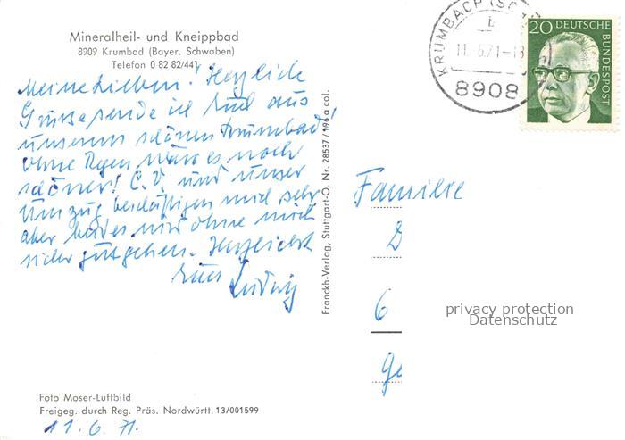 74110298 alte Postkarte Krumbad Krumbach Guenzburg Bayern Fliegeraufnahme Mineral und Kneippbad postalisch gelaufen Erhaltung siehe scans [WerneD78] KatCode: 11110009774150