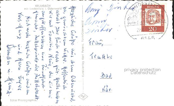 72194679 alte Postkarte Krumbad mit Lindenfels Odenwald postalisch gelaufen Erhaltung siehe scans KatCode: 11110009774150