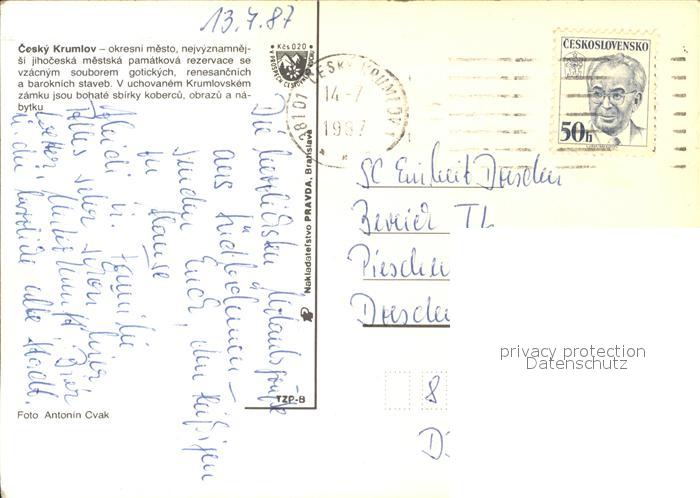 old postcard Krumlov Cesky postalisch gelaufen Erhaltung siehe scans