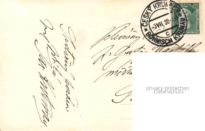 old postcard Krumlov Ortspartie mit Kirche postalisch gelaufen Erhaltung siehe scans [LiesaD40]