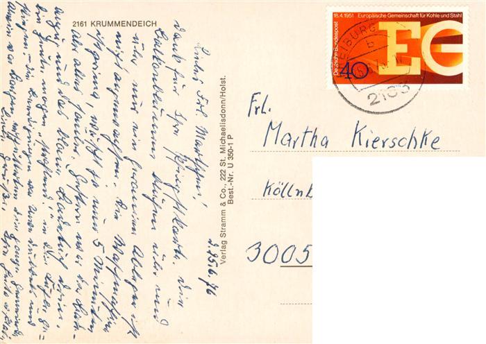 73878740 alte Postkarte Krummendeich Partie am Fluss Gasthof Kirche postalisch gelaufen Erhaltung siehe scans [FriedD77] KatCode: 11110003359030