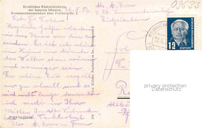 72634474 alte Postkarte Krummenhennersdorf Kirchliches Ruestzeitenheim Innere Mission postalisch gelaufen Erhaltung siehe scans [KathaD79] KatCode: 11110014177210