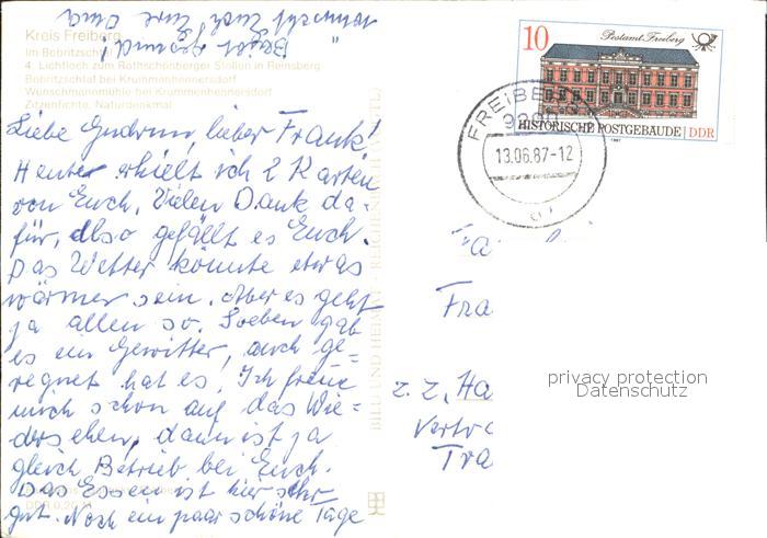 72332263 alte Postkarte Krummenhennersdorf Landschaftsschutzgebiet Grabentour Bobritzschtal Rothschoenberger Stollen Muehle Zitzenfichte Naturdenkmal postalisch gelaufen Erhaltung siehe scans KatCode: 11110014177210