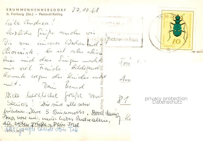 73868180 alte Postkarte Krummenhennersdorf Pastoral-Kolleg postalisch gelaufen Erhaltung siehe scans [FriedD77] KatCode: 11110014177210