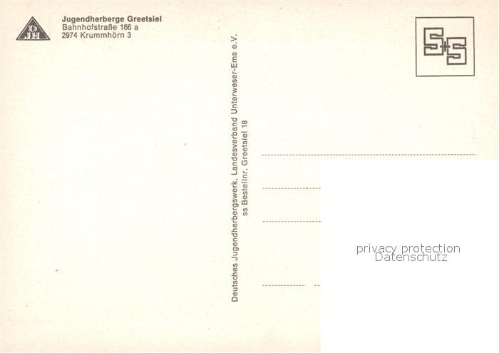 73324173 Krummhoern Jugendherberge Greetsiel Windmuehle Fischereihafen Fischkutter postalisch nicht gelaufen Erhaltung siehe scans [FriedD77] KatCode: 11110003452014