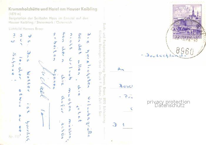 72916000 alte Postkarte Krummholzhuette Hotel am Hauser Kaibling postalisch gelaufen Erhaltung siehe scans [NatalD47] KatCode: 11390222061217