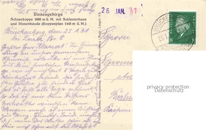 74033527 old postcard Krummhuebel Karpacz Riesengebirge PL Winterpanorama Schneekoppe mit Schlesierhaus und Riesenbaude postalisch gelaufen Erhaltung siehe scans [FriedD77] KatCode: 11410