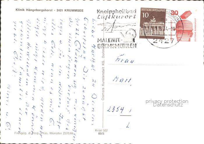 72369991 alte Postkarte Krummsee Holstein Fliegeraufnahme Klinik Haengebargshorst postalisch gelaufen Erhaltung siehe scans KatCode: 11110001055028