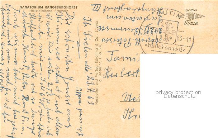 73652744 alte Postkarte Krummsee Holstein Sanatorium Haengebarghorst Holsteinische Schweiz postalisch gelaufen Erhaltung siehe scans [FriedD77] KatCode: 11110001055028