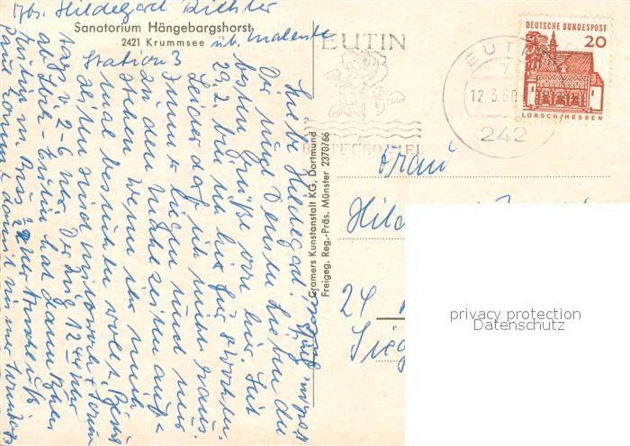 73617715 alte Postkarte Krummsee Holstein Sanatorium Haengebargshorst Fliegeraufnahme postalisch gelaufen Erhaltung siehe scans [FriedD77] KatCode: 11110001055028