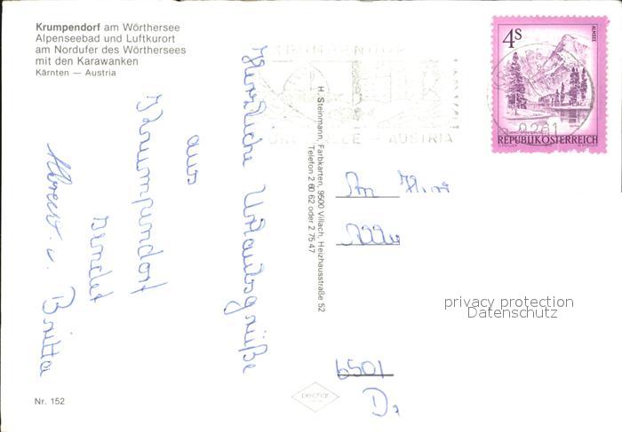 72437522 alte Postkarte Krumpendorf Woerther See Fliegeraufnahme postalisch gelaufen Erhaltung siehe scans KatCode: 11390211020415