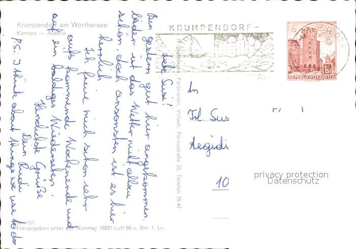 72289832 alte Postkarte Krumpendorf Woerther See Fliegeraufnahme postalisch gelaufen Erhaltung siehe scans KatCode: 11390211020415