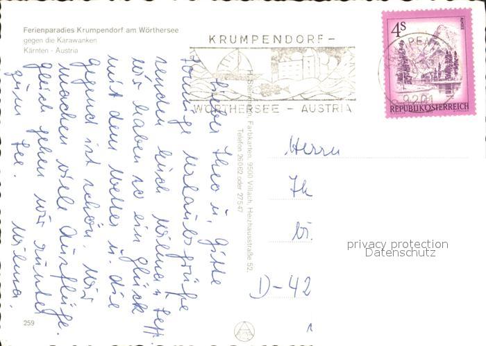 72446543 alte Postkarte Krumpendorf Woerther See Fliegeraufnahme postalisch gelaufen Erhaltung siehe scans KatCode: 11390211020415