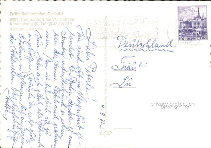 72437310 alte Postkarte Krumpendorf Woerther See Fruehstueckspension Ossimitz postalisch gelaufen Erhaltung siehe scans KatCode: 11390211020415