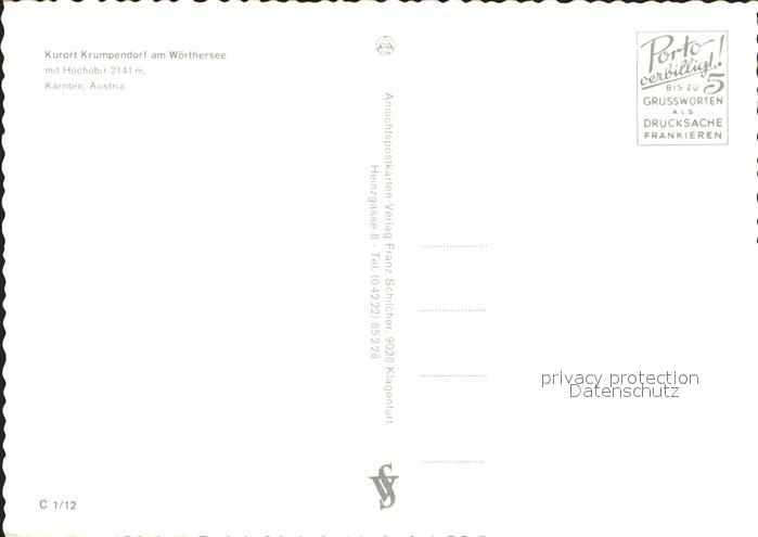 71974590 Krumpendorf Woerther See Hochobir postalisch nicht gelaufen Erhaltung siehe scans KatCode: 11390211020415