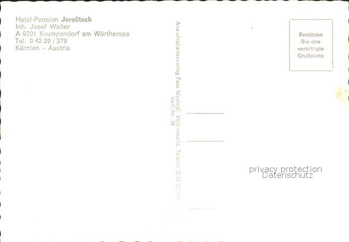 72024306 Krumpendorf Woerther See Hotel Pension Jerolitsch postalisch nicht gelaufen Erhaltung siehe scans KatCode: 11390211020415