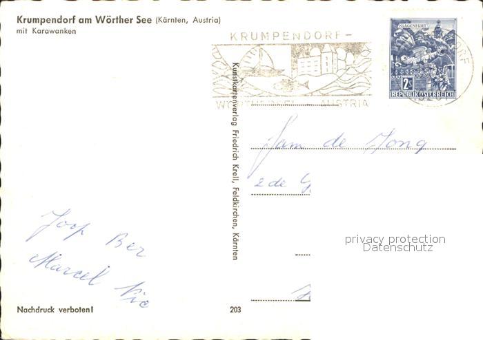 71979775 alte Postkarte Krumpendorf Woerther See Karawanken postalisch gelaufen KatCode: 11390211020415