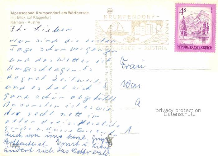 72709538 alte Postkarte Krumpendorf Woerthersee Alpenseebad mit Blick auf Klagenfurt Fliegeraufnahme postalisch gelaufen Erhaltung siehe scans [FriedD77] KatCode: 11390211020415