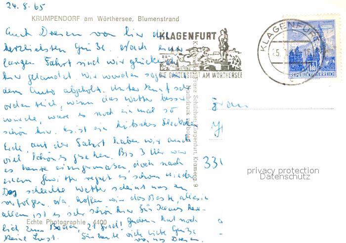 72912301 alte Postkarte Krumpendorf Woerthersee Blumenstrand postalisch gelaufen Erhaltung siehe scans [FriedD77] KatCode: 11390211020415