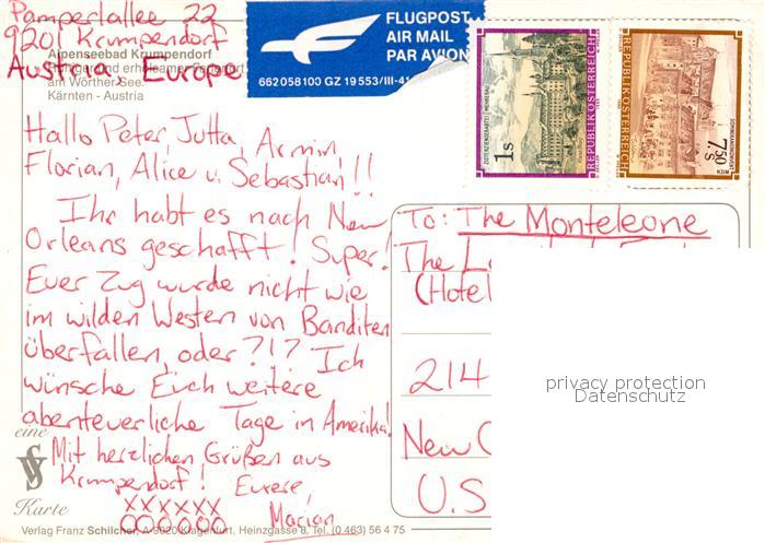 73587243 alte Postkarte Krumpendorf Woerthersee Fliegeraufnahme postalisch gelaufen Erhaltung siehe scans [WerneD78] KatCode: 11390211020415