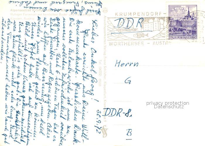 73518801 alte Postkarte Krumpendorf Woerthersee Fliegeraufnahme postalisch gelaufen Erhaltung siehe scans [FriedD77] KatCode: 11390211020415