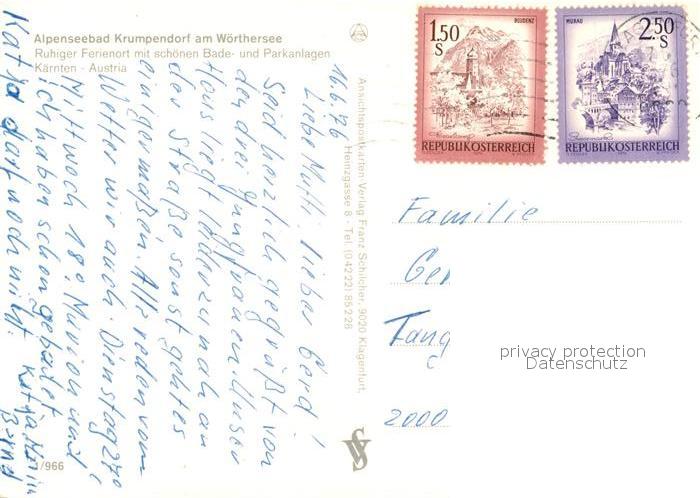 73340192 alte Postkarte Krumpendorf Woerthersee Fliegeraufnahme Seepartie postalisch gelaufen Erhaltung siehe scans [LiesaD40] KatCode: 11390211020415