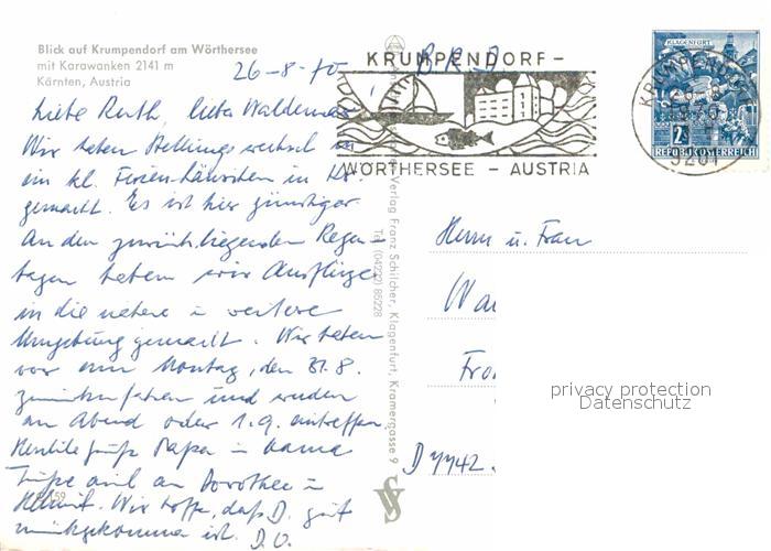 72677535 alte Postkarte Krumpendorf Woerthersee mit Karawanken Fliegeraufnahme postalisch gelaufen Erhaltung siehe scans [FriedD77] KatCode: 11390211020415