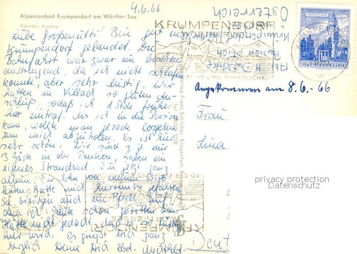 73360532 alte Postkarte Krumpendorf Woerthersee Panorama Strand Park postalisch gelaufen Erhaltung siehe scans [KathaD81] KatCode: 11390211020415