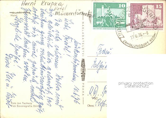 old postcard Krupka Hotel Mueckentuermeli postalisch gelaufen Erhaltung siehe scans