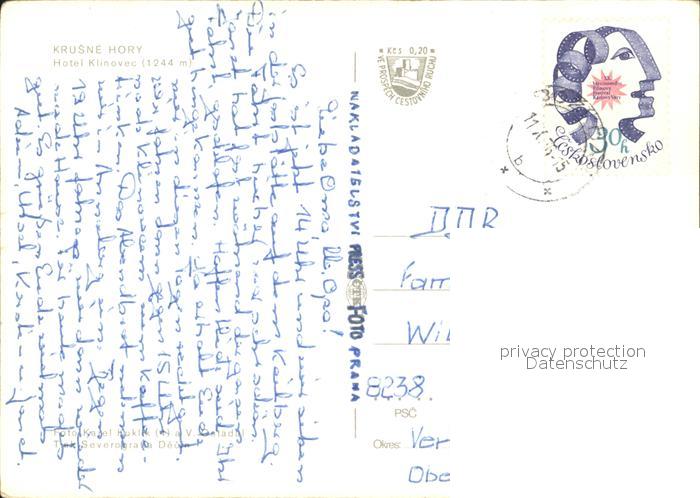 old postcard Krusne Hory Hotel Klinovec postalisch gelaufen Erhaltung siehe scans