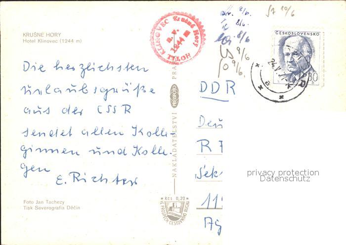 old postcard Krusne Hory Hotel Klinovec Restaurant postalisch gelaufen Erhaltung siehe scans