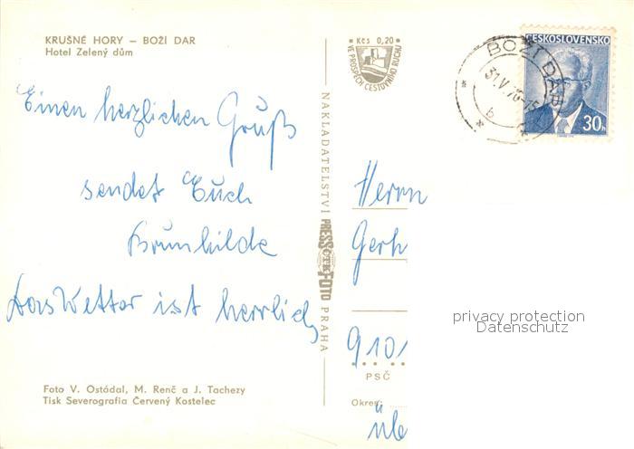 old postcard Krusne Hory Hotel Zeleny dum postalisch gelaufen Erhaltung siehe scans [KathaD81]