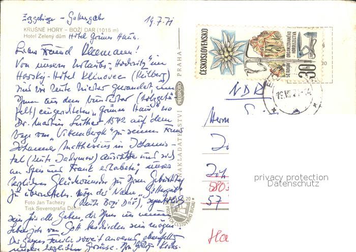 old postcard Krusne Hory Hotel Zeleny dum postalisch gelaufen Erhaltung siehe scans
