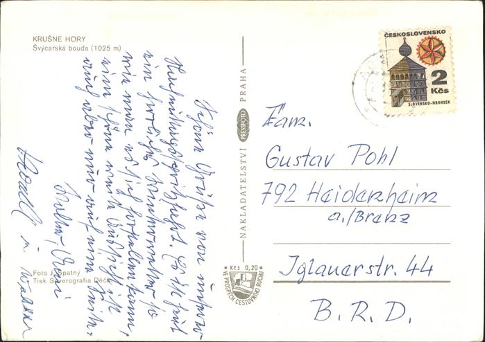 old postcard Krusne Hory Svycarska bouda postalisch gelaufen Erhaltung siehe scans