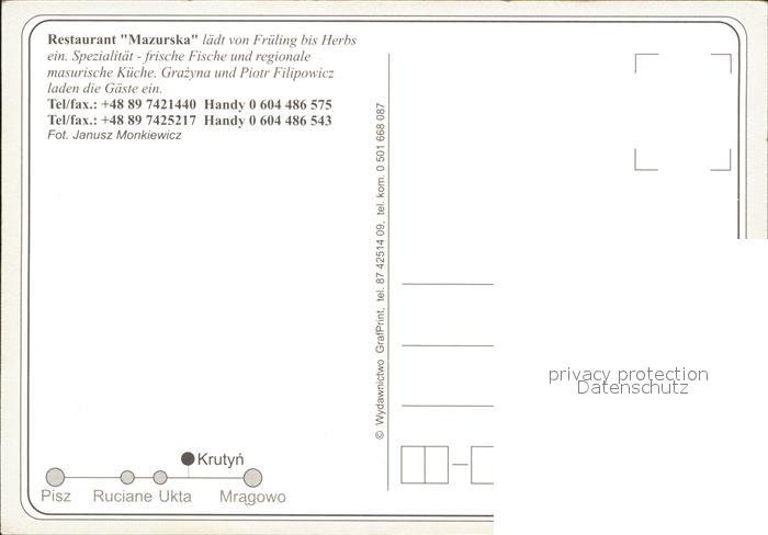 Krutyn Restaurant Mazurska postalisch nicht gelaufen Erhaltung siehe scans