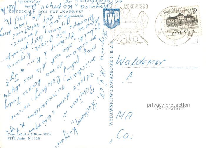 13526538 old postcard Krynica-Zdroj Dom FWP Kaprys postalisch gelaufen Erhaltung siehe scans [WerneD78] KatCode: 11410