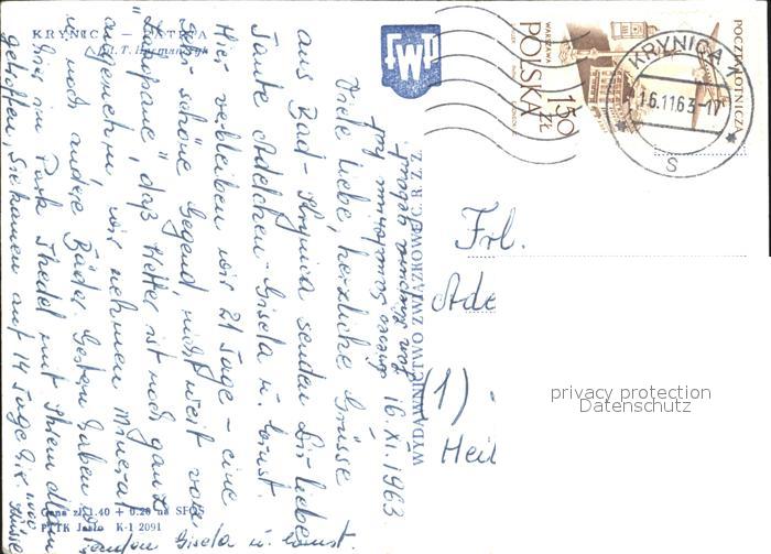 old postcard Krynica-Zdroj postalisch gelaufen Erhaltung siehe scans