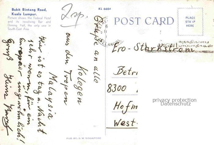 74030224 old postcard Kuala Lumpur Malaysia Bukit Bintang Road postalisch gelaufen Erhaltung siehe scans [WerneD78] KatCode: 12210
