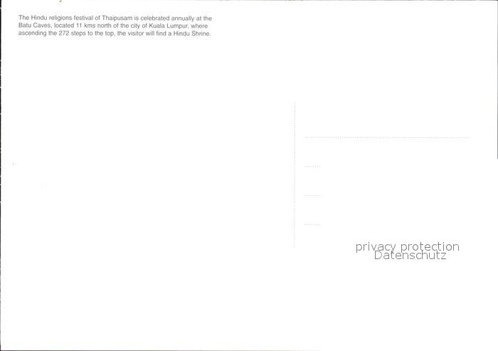 Kuala Lumpur the Hindu religions festival of Thaipusam Batu Caves postalisch nicht gelaufen Erhaltung siehe scans