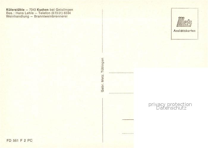 73570109 Kuchen Fils Gaststaette Kueferstueble Gastraum postalisch nicht gelaufen Erhaltung siehe scans [FriedD77] KatCode: 11110008117033