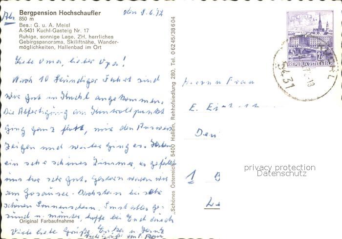 71909318 alte Postkarte Kuchl Bergpension Hochschaufler postalisch gelaufen Erhaltung siehe scans KatCode: 11390323050207