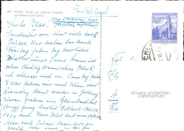 71822357 alte Postkarte Kuchl Gasthaus zur Schoenen Aussicht mit Hohem Goell postalisch gelaufen Erhaltung siehe scans KatCode: 11390323050207