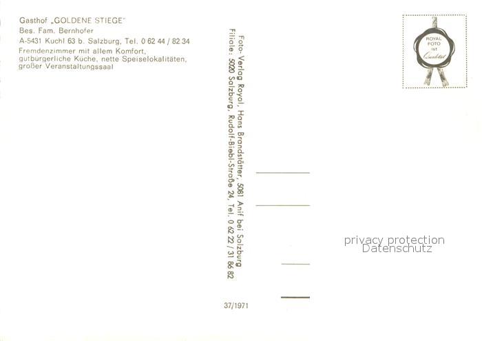 73659037 Kuchl Gasthof Goldene Stiege Restaurant Terrasse postalisch nicht gelaufen Erhaltung siehe scans [FriedD77] KatCode: 11390323050207