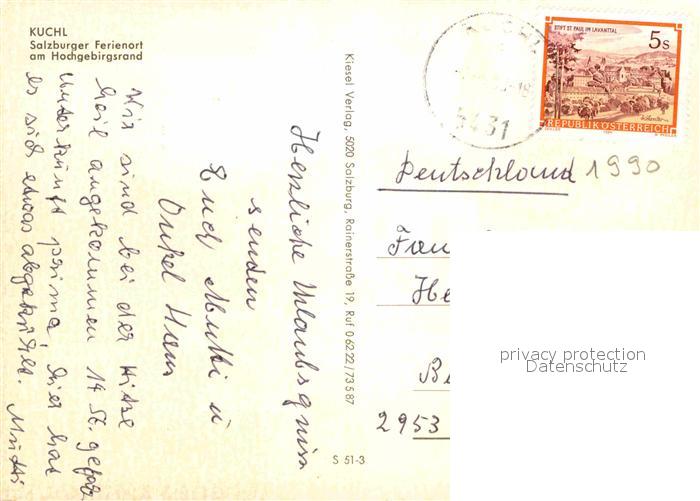 72909326 alte Postkarte Kuchl Kirche postalisch gelaufen Erhaltung siehe scans [NatalD47] KatCode: 11390323050207