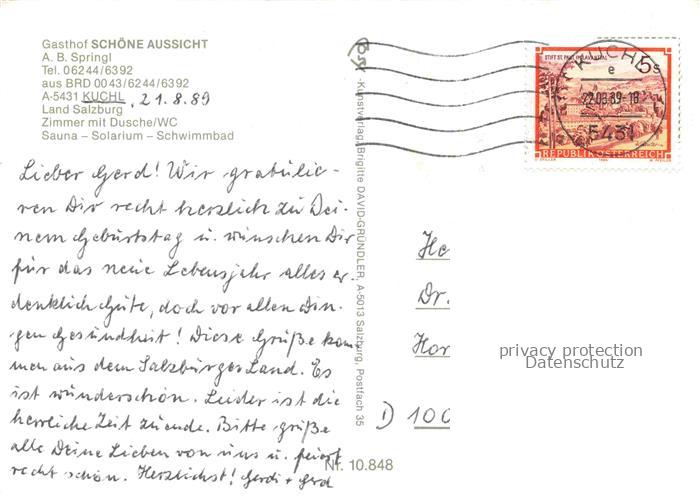 74110009 alte Postkarte Kuchl Salzburg AT Gasthof Schoene Aussicht Liegewiese Gastraeume Panorama postalisch gelaufen Erhaltung siehe scans [WerneD78] KatCode: 11390323050207