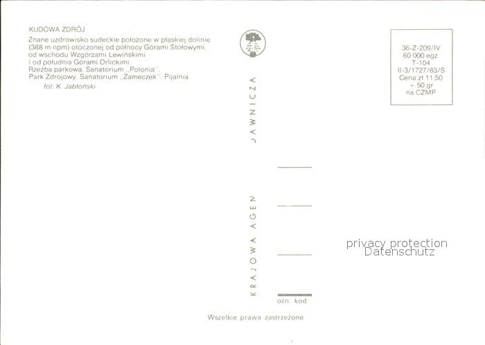 Kudowa-Zdroj Plaskiej dolinie Gorami Stolowymi Wzgorzami Lewinskimi Rzezba parkowa Sanatorium Polonia Park Zdrojowy Sanatorium Zameczek Pijalnia postalisch nicht gelaufen Erhaltung siehe scans