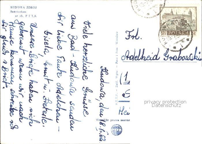 old postcard Kudowa-Zdroj Sanatorium postalisch gelaufen Erhaltung siehe scans